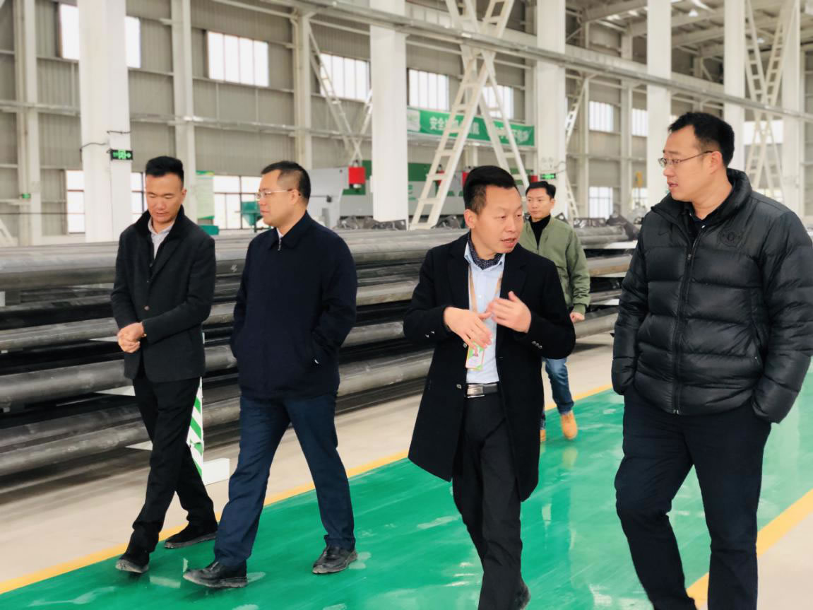 调研组一行实地参观了绿米巴5G智慧路灯生产厂、智慧化数字节能系统门窗厂及产品展示中心,听取了绿米巴股份董事长李正华对产业园项目的发展规划、技术研发布局、产品生产线工艺工序等情况的汇报,于飞对绿米巴的建设规模、科技布局、立足于新能源新材料产业等方面给予了高度的肯定和认可,并积极地了解产品的制作工艺,对产品有极高的兴趣。
