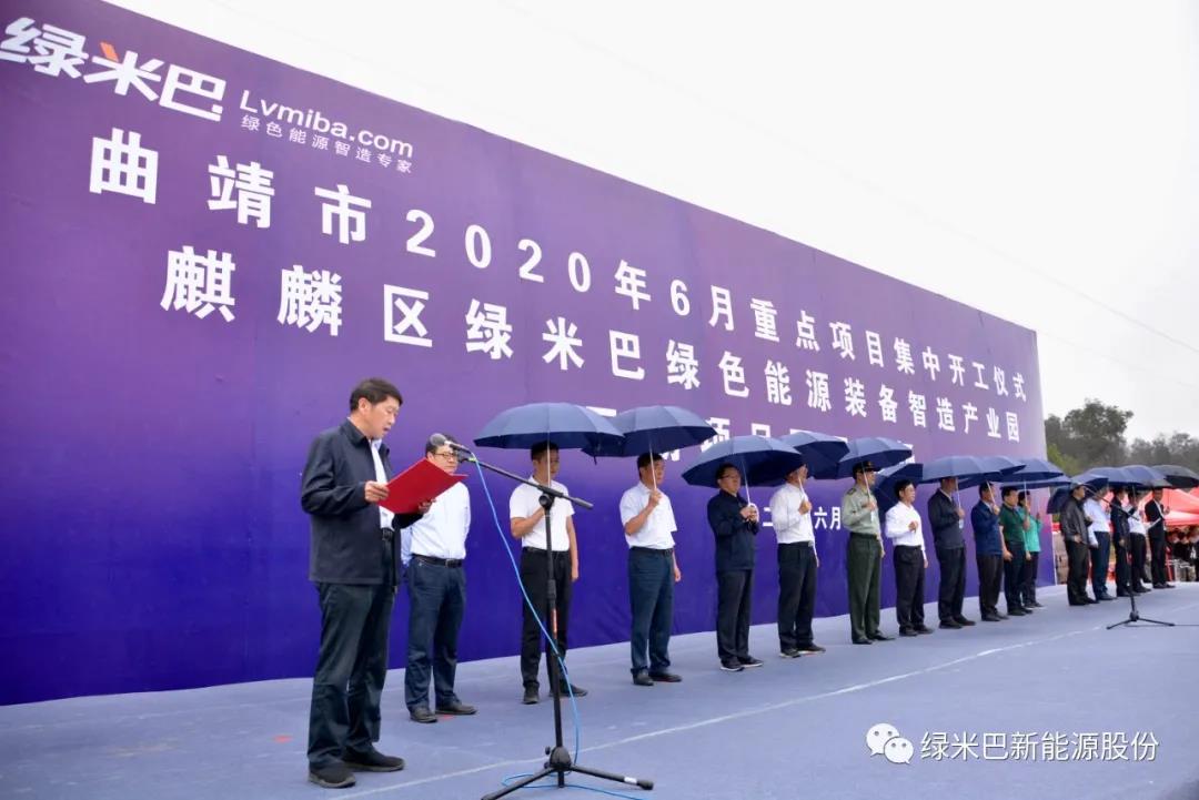 2019年6月18日上午,曲靖市重点产业集中开工仪式在绿米巴绿色能源装备智造产业园(二期)隆重举行,此次集中开工22个重点项目,总投资55.8亿元,省委常委、市委书记李文荣、市长李石松、市纪委书记尹向阳、市委政法委书记吴朝武、袁顺钦、张长英、朱党柱、王刚、唐开荣、谷超灵、陈世禹、罗世雄、陆永昌、刘本芳、杨庆东、李金林等市领导,麒麟区委书记解天云、区长朱开荣等区领导及其他各县(市、区)党政主要领导、市直有关部门负责人,麒麟区有关乡(镇、街道)及部门主要负责人等领导参加主会场开工仪式。